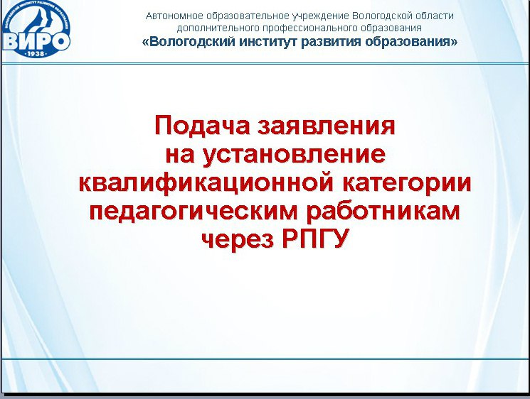 Подача заявления на установление квалификационной категории педагогическим работникам через РПГУ